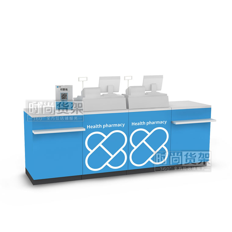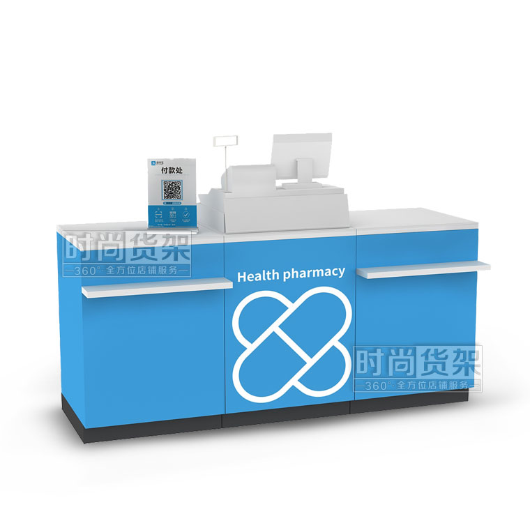 這是金麗聲貨架推出的最新款藥店收銀臺,如需了解其他藥店貨架產品,請點擊www.vjnj.cn/pharmacy/。
