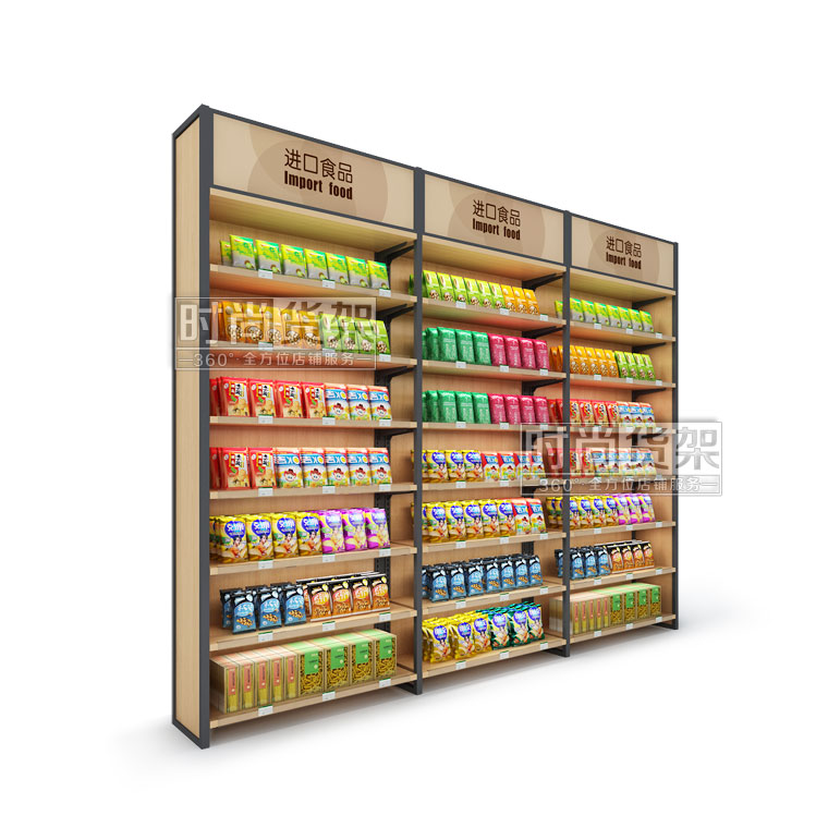 - 產(chǎn)品描述:這款便利店零食貨架采用了鋼木結(jié)合材質(zhì)精制而成,木質(zhì)背板的配置更顯高端、時(shí)尚。