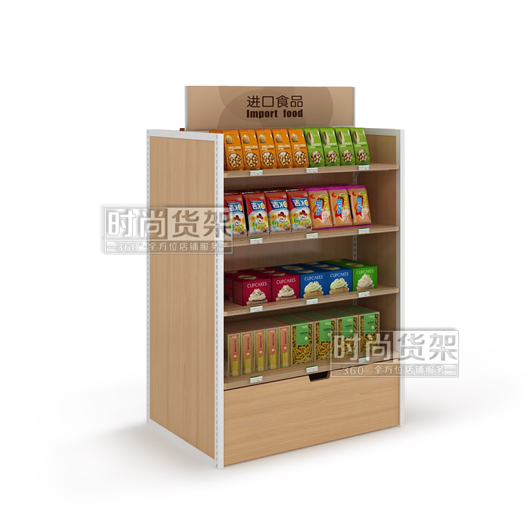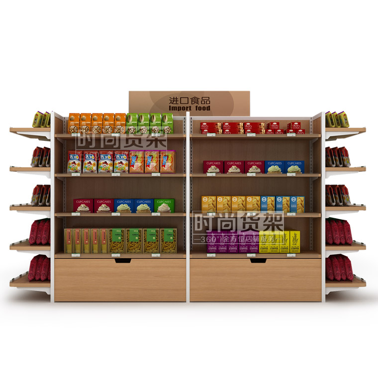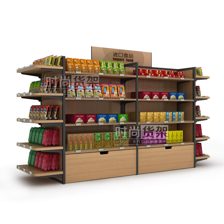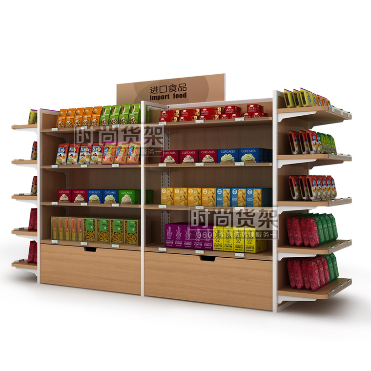 便利店食品貨架 便利店進口食品貨架 雙面零食貨架 雙面便利店貨架 木背板便利店貨架