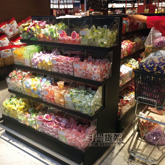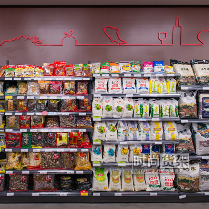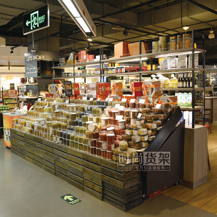 超市貨架_高檔木質(zhì)食品架(帶燈管)